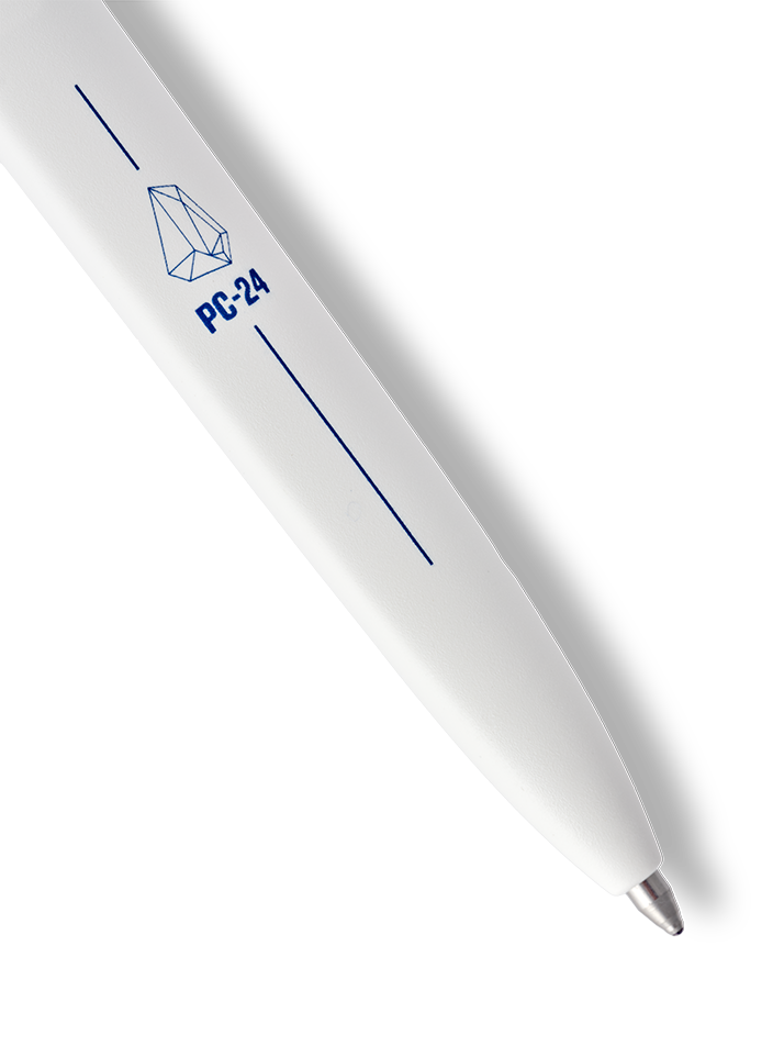 Swiss made, Gehäuse aus rezykliertem und regeneriertem Kunststoff, ergonomische Dreiecksform, mit Kunststoff-Grossraummine (blauschreibend).