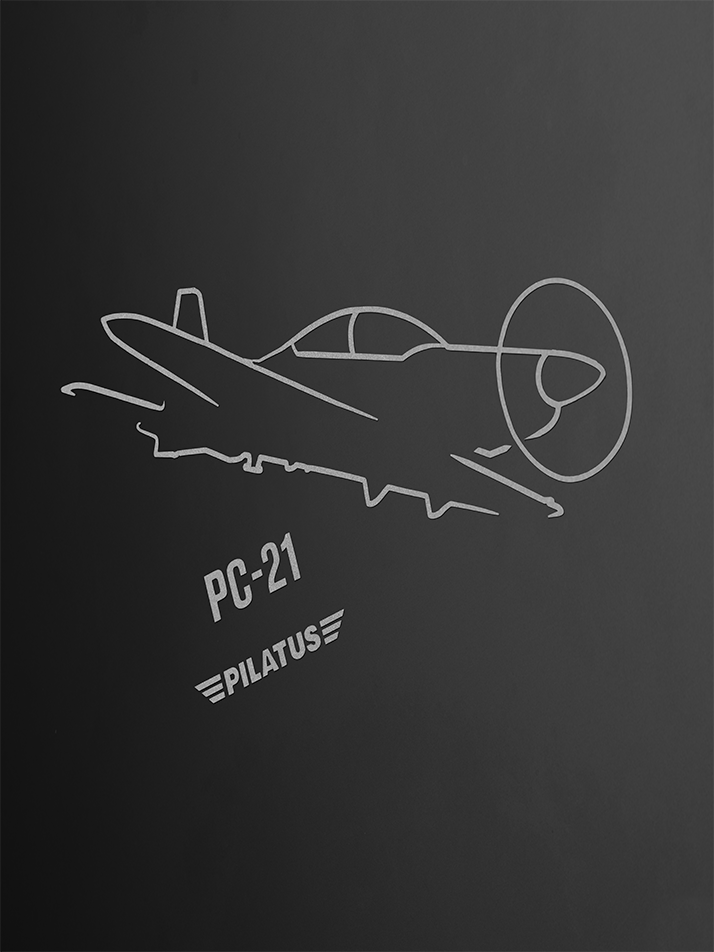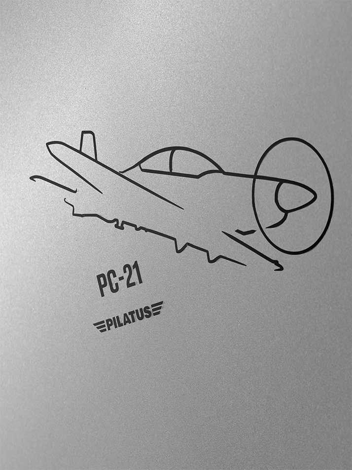 PC-21 Flugzeugsilhouette aus IP5700-Folie, mit ca. 8 Jahren Haltbarkeit.