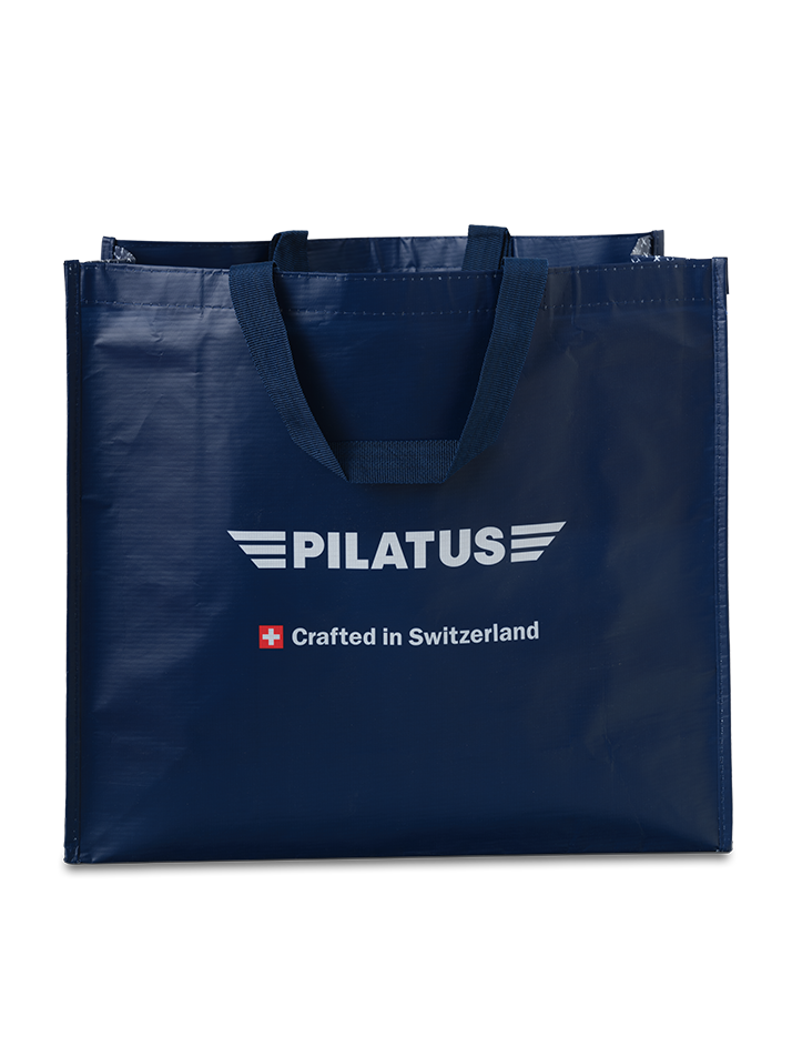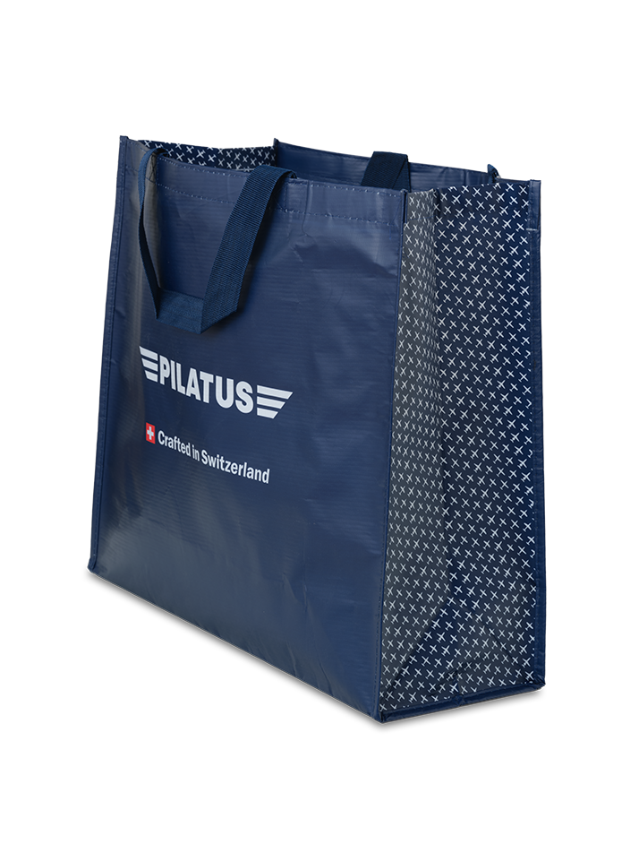 Shoppingtasche hergestellt aus rezykliertem Pet Material, mit einer matten Oberfläche. Ausgestattet mit einem gewobenen Henkel.