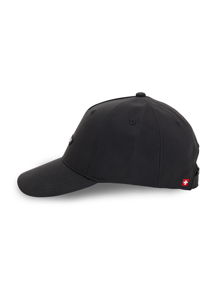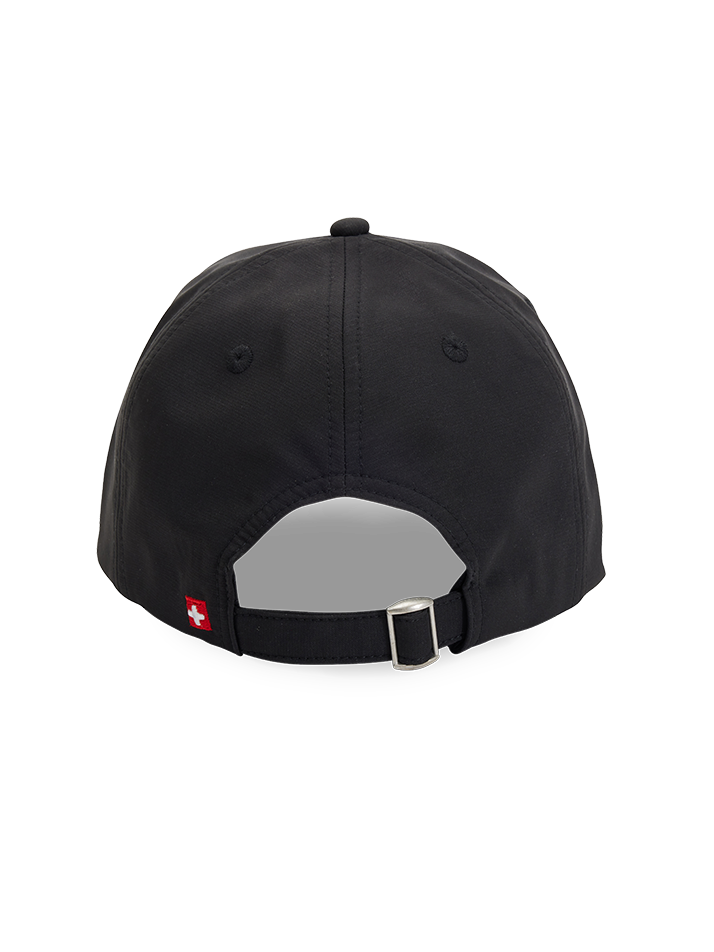 Cap aus bequemem und leichtem Polyester hergestellt, mit umstickten Klimalöchern, grössenverstellbar mit Metallschnalle.