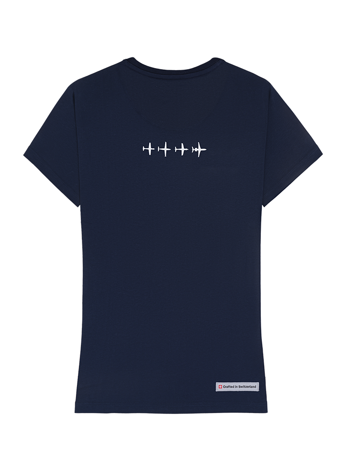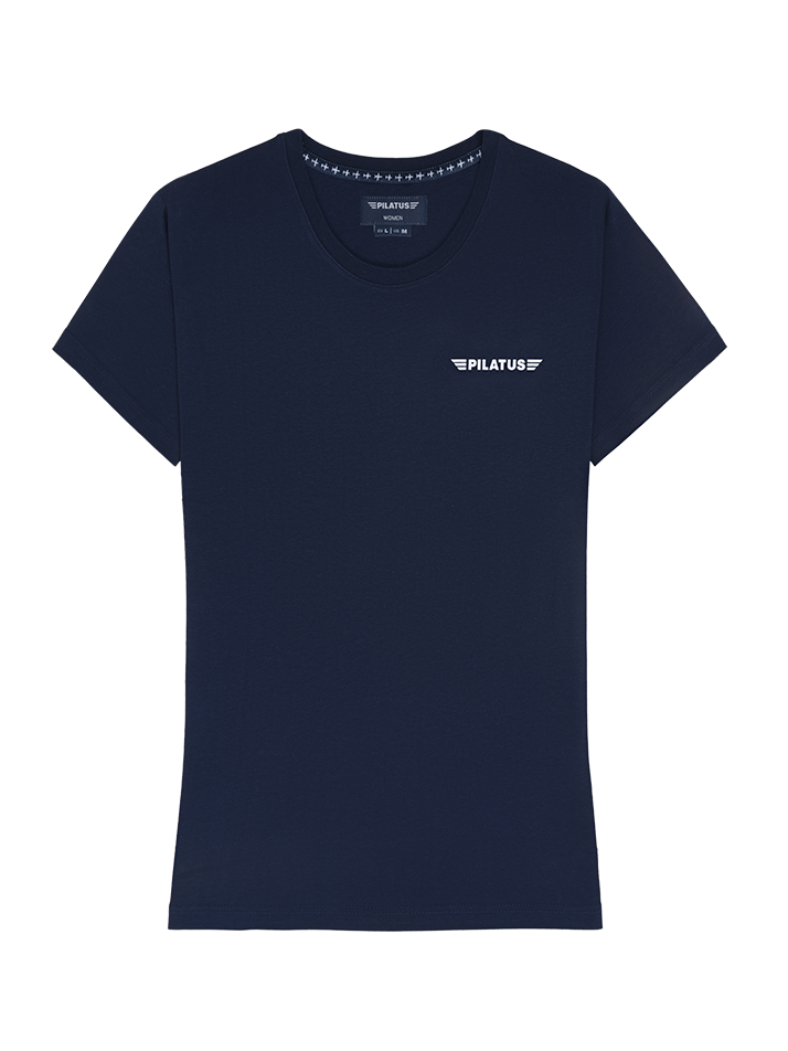 Klassisches Damen T-Shirt mit einem Rundhals und Seitennähte. Kragen 2-lagig mit Elasthan und bedrucktes Nackenband.