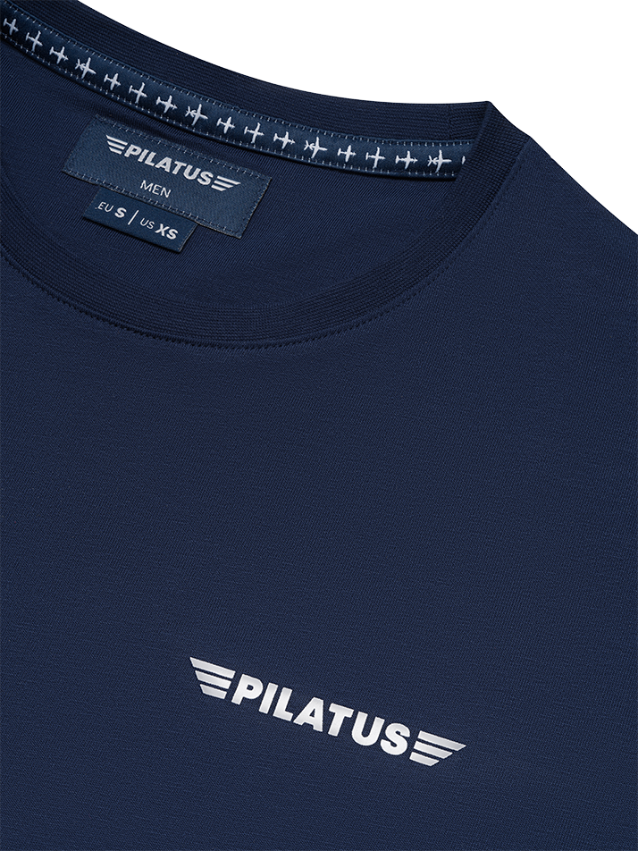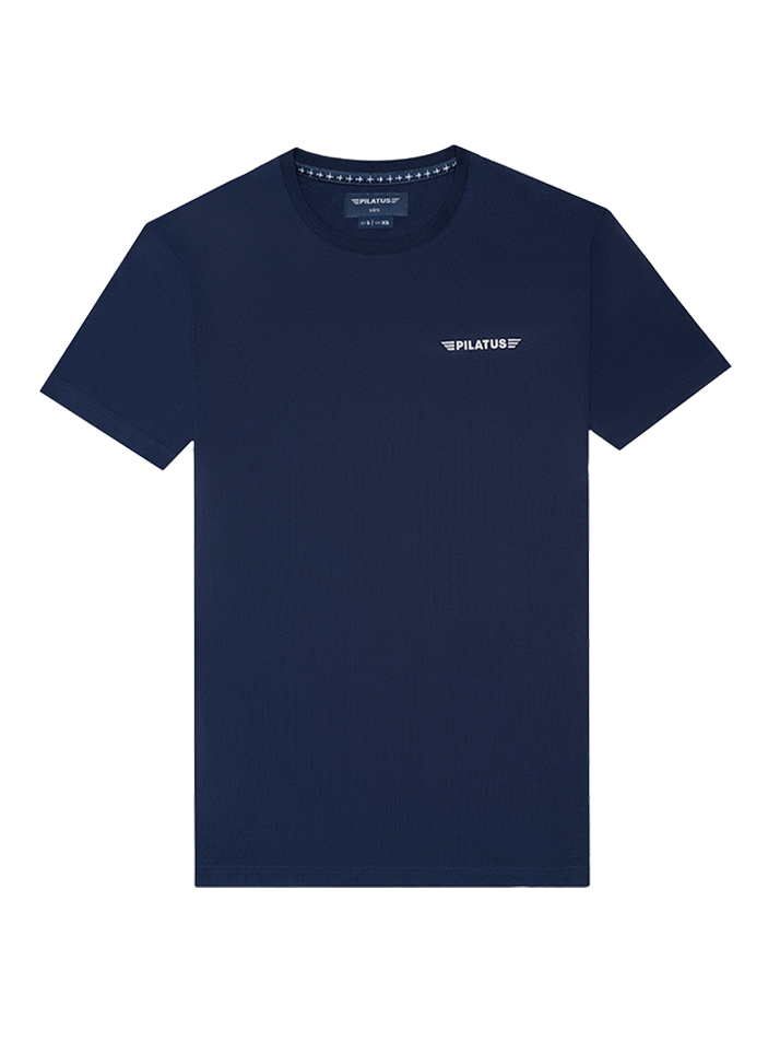 Klassisches Herren T-Shirt mit einem Rundhals und Seitennähte. Kragen 2-lagig mit Elasthan und bedrucktes Nackenband.
