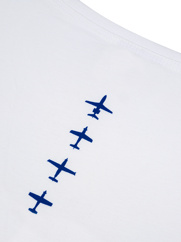 Ein klassisches T-Shirt mit einem Rundhals und Seitennähte. Zudem hat es einen 2-lagigen Kragen mit Elasthan und ein Nackenband.