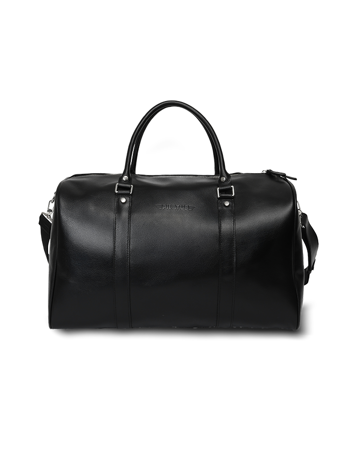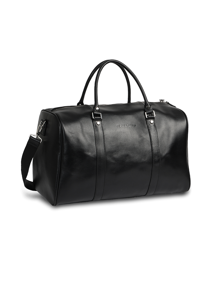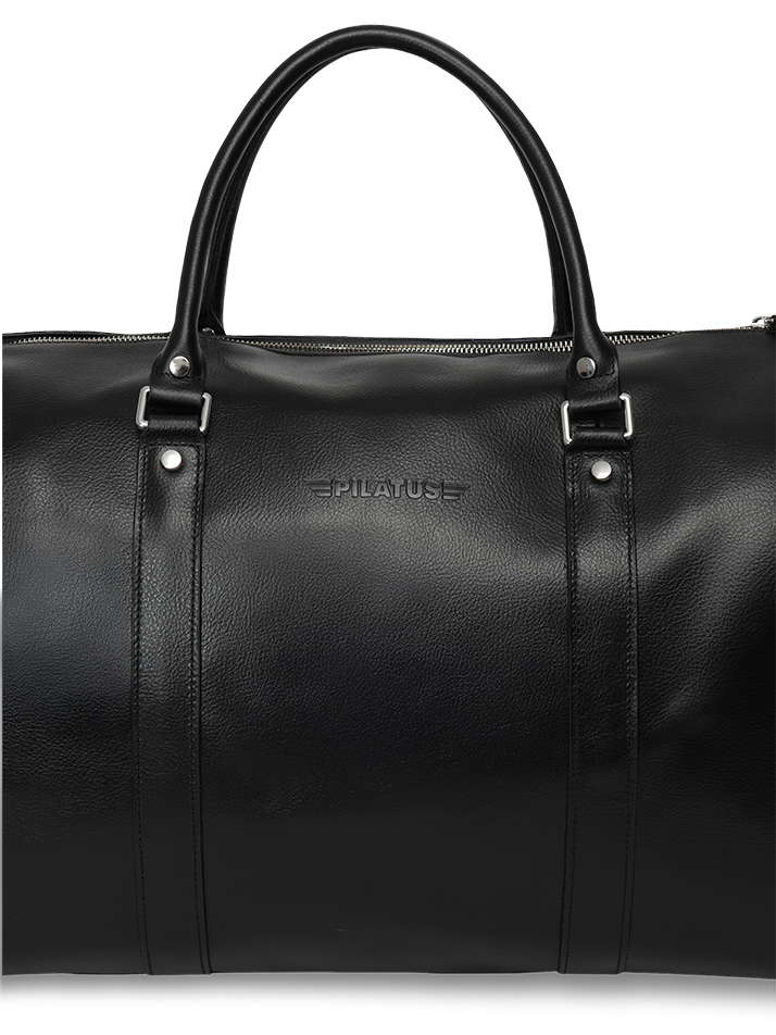 Elegant weekender made of premium genuine leather – perfect for short trips, business or everyday use. The spacious main compartment, adjustable shoulder strap and sturdy snap hook ensure comfort and durability. Delivered in a black non-woven bag with Pilatus logo.