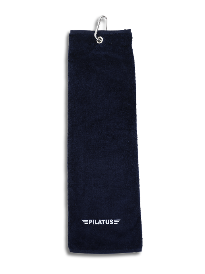 The golf towel is made of 100% cotton. In addition, the golf towel has an eyelet and a carabiner.