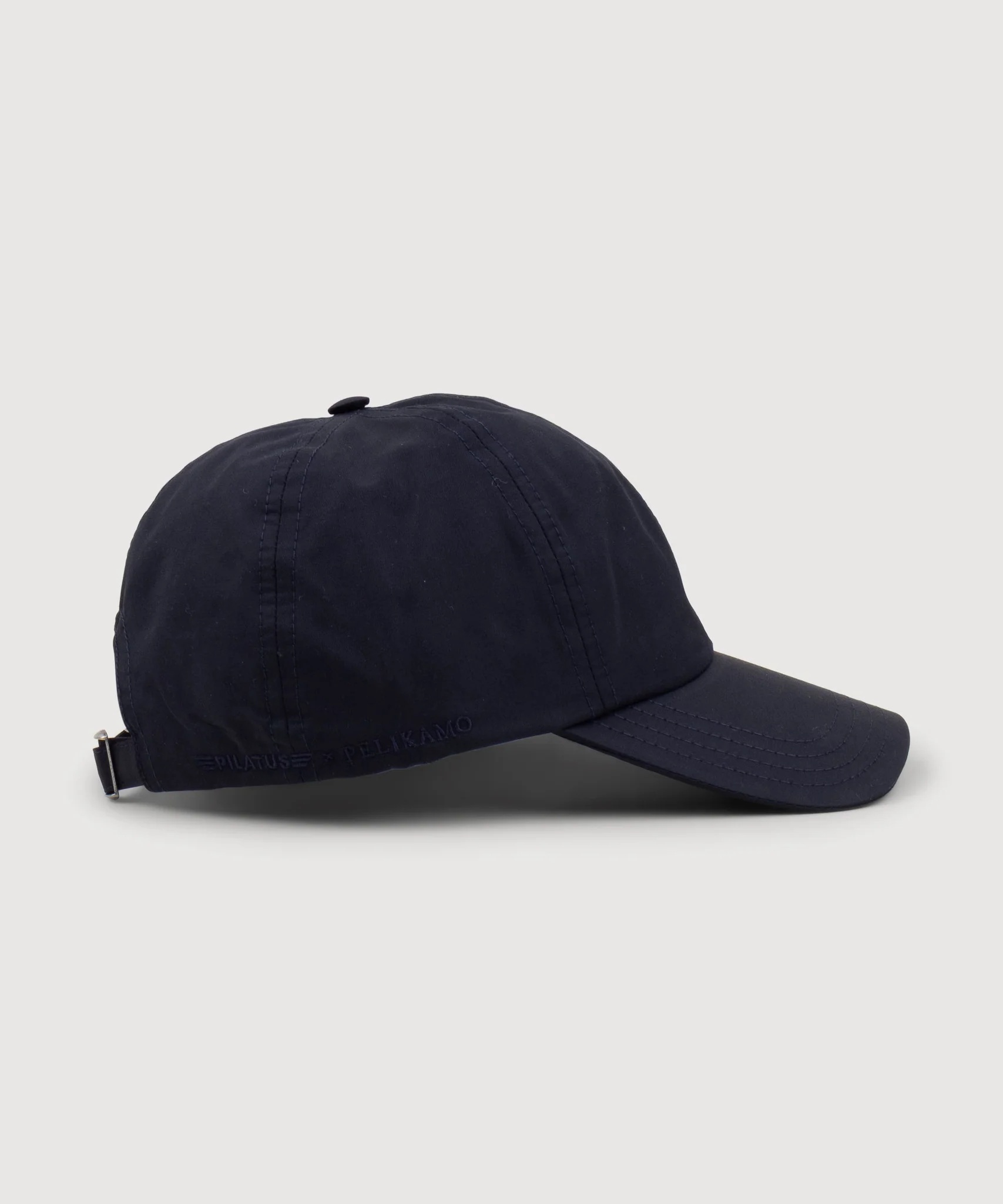 Technical sports cap from our exclusive capsule collection with Pilatus Aircraft Ltd. Featuring Italian technical fabric with brass adjustable back closure and side embroidery.