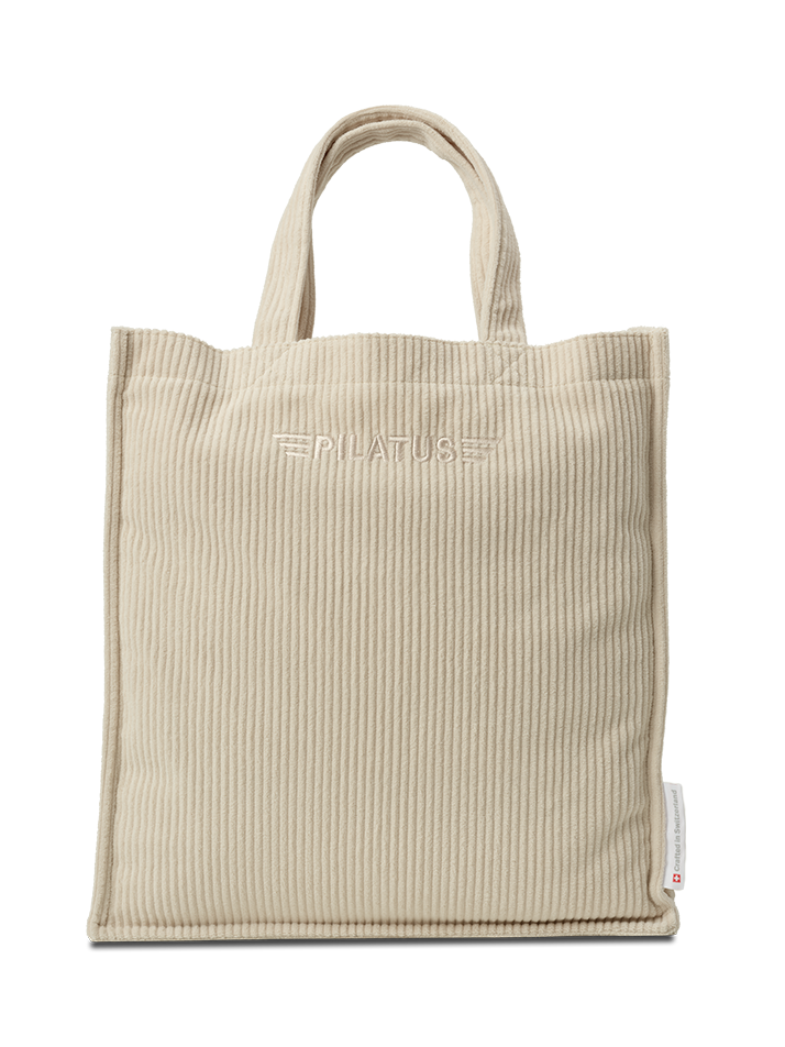 Retro cord shopping bag with adjustable strap, handle and inner pocket with zip.
