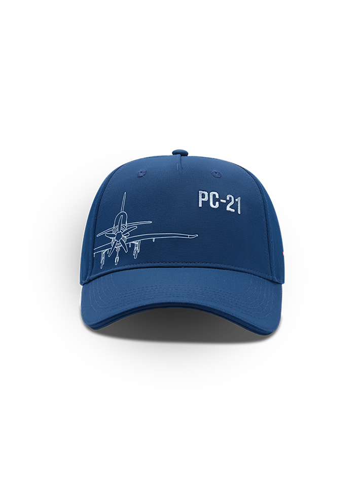 Sporty polyester baseball cap with ventilation holes, adjustable with metal buckle, with PC-21 silhouette print.