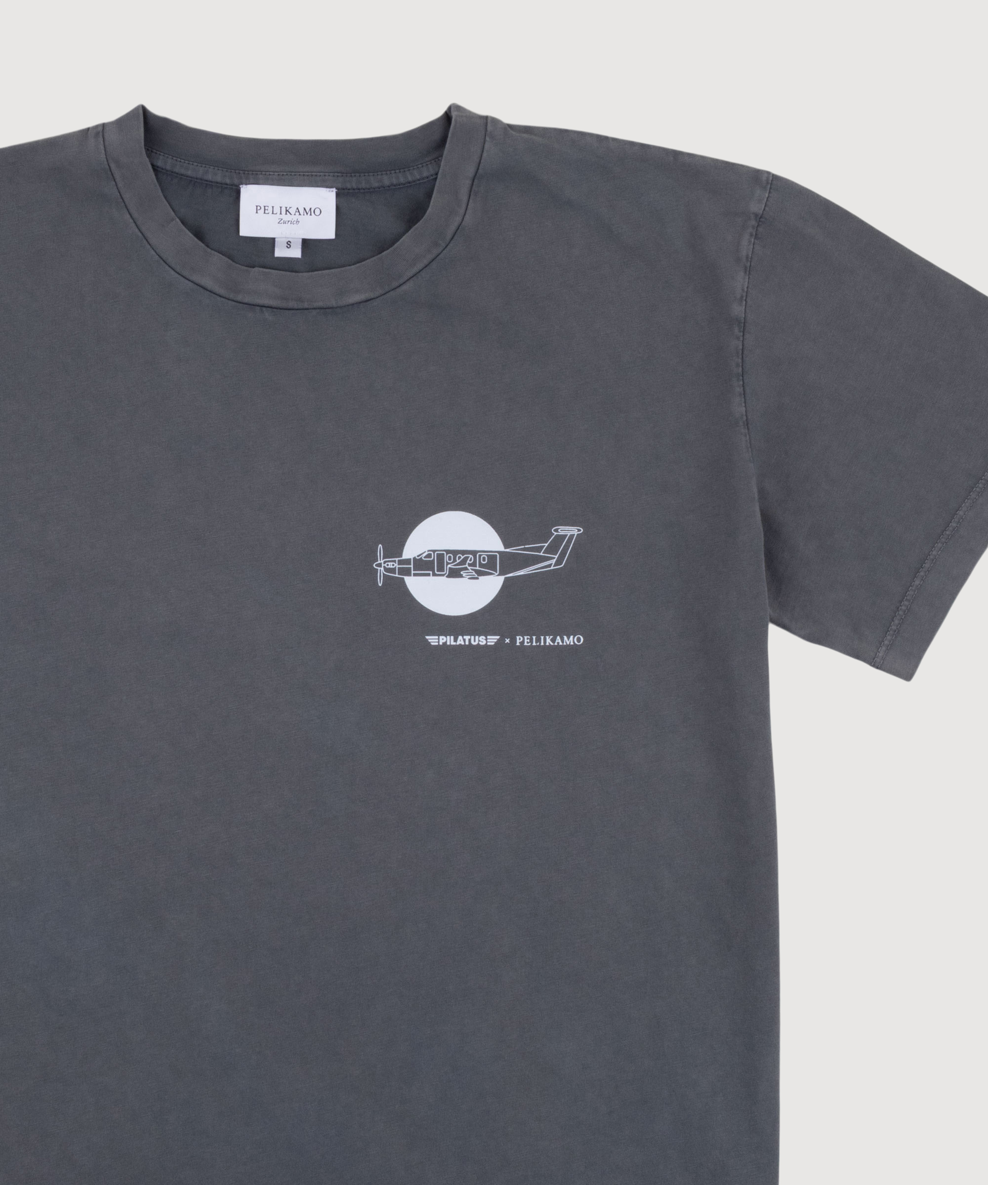 Relaxed T-shirt from our exclusive capsule collection with Pilatus Aircraft Ltd. Featuring Pilatus PC-21 aircraft graphic on chest (dark grey) or back (cream).